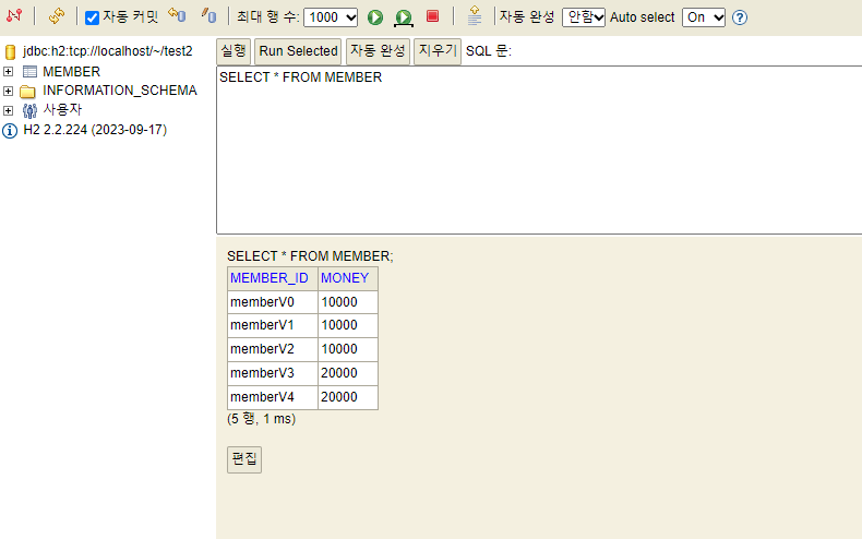 마지막에 회원을 삭제하므로 memberId를 바꾸지 않아도 같은 테스트를 반복해서 수행할 수 있다.